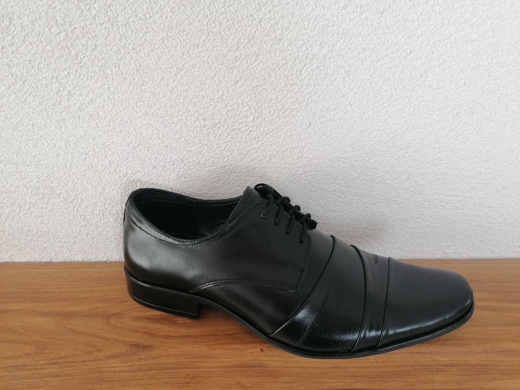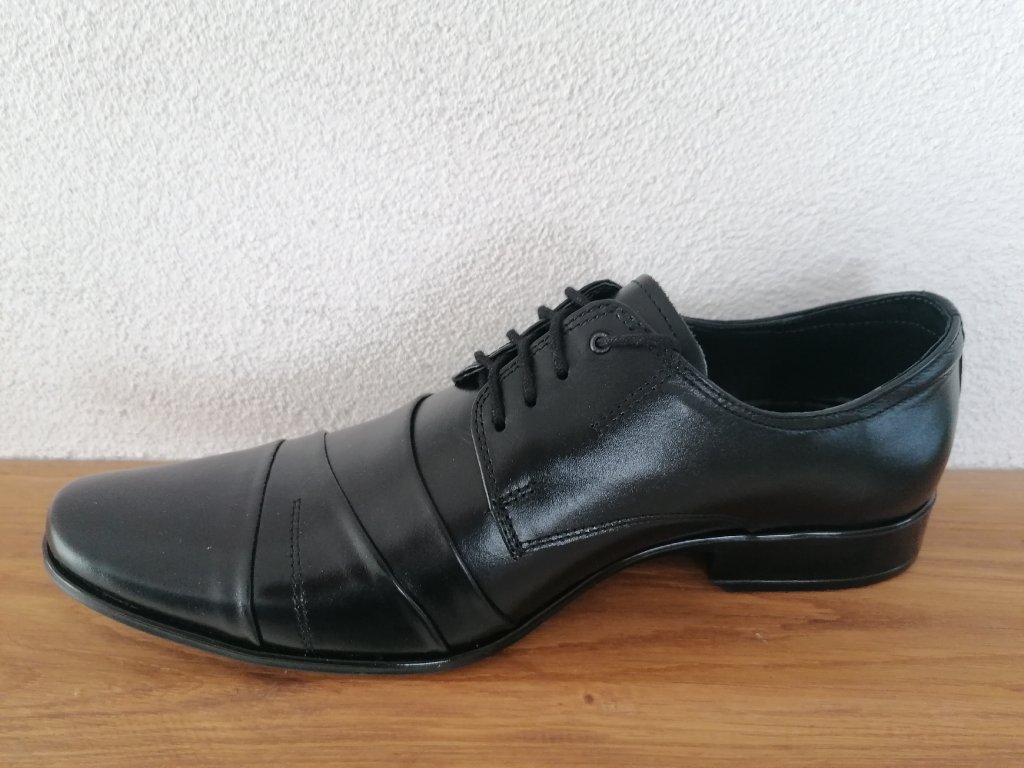 Pánske čierne šnurovacie poltopánky vyrobené z 100% prírodnej kože na klasickej podošve. Skvela štýlová spoločenská obuv svojou farbou a strihom je veľmi pohodlná. Vystlaná stielka umocní pocit pre každodenné nosenie.